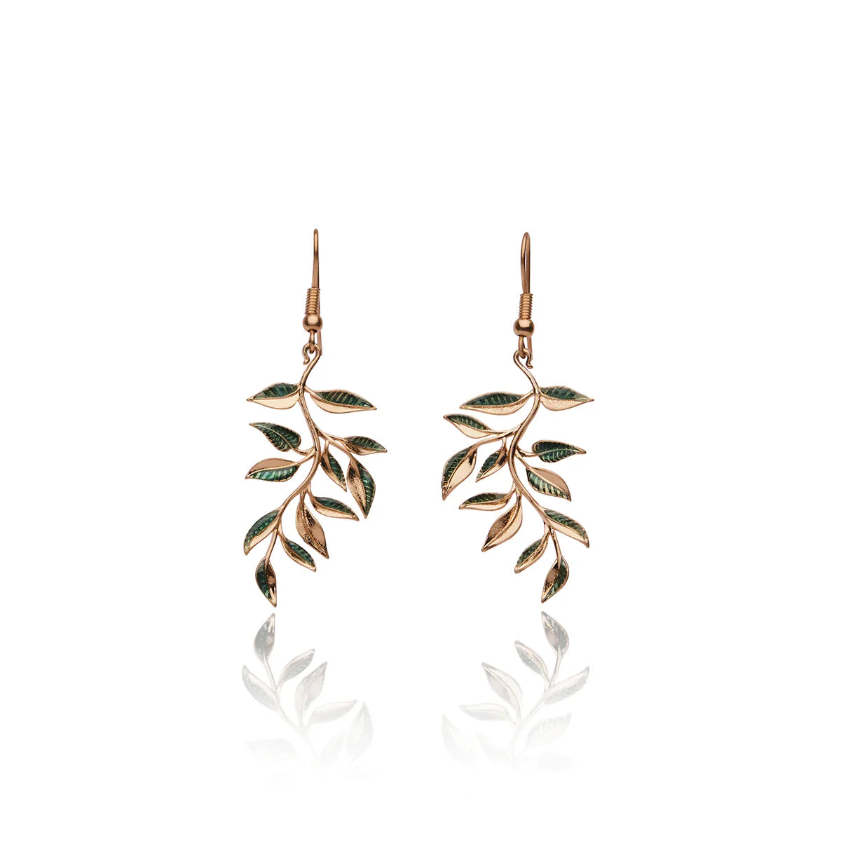 أقراط متدلية مستوحاة من الطراز القديم من Lovett and Co. هذه الأقراط الرقيقة المطلية بالنحاس تم تشطيبها بمينا مطلي يدويًا باللون الأخضر الداكن.
