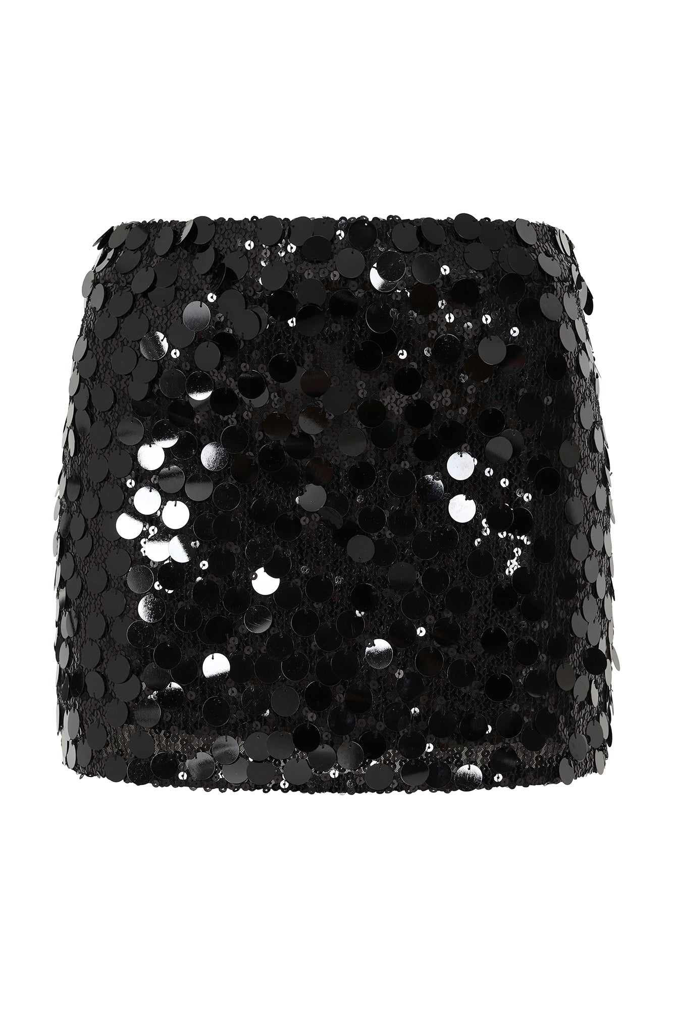 نقدم لكم إيدي: تنورة سوداء صغيرة لرؤيتك خلال موسم الحفلات! يتألق هذا التصميم الصغير متعدد الاستخدامات مع زخرفة الترتر بالكامل. إيدي مبطن بالكامل بسحاب مخفي...
