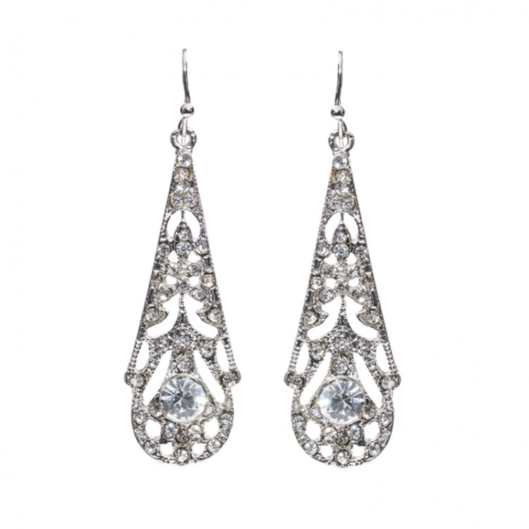 مجوهرات أنيقة مستوحاة من الشخصيات الاجتماعية في عشرينيات القرن العشرين. هذه الأقراط الكريستالية المتدلية هي لمسة نهائية رائعة!