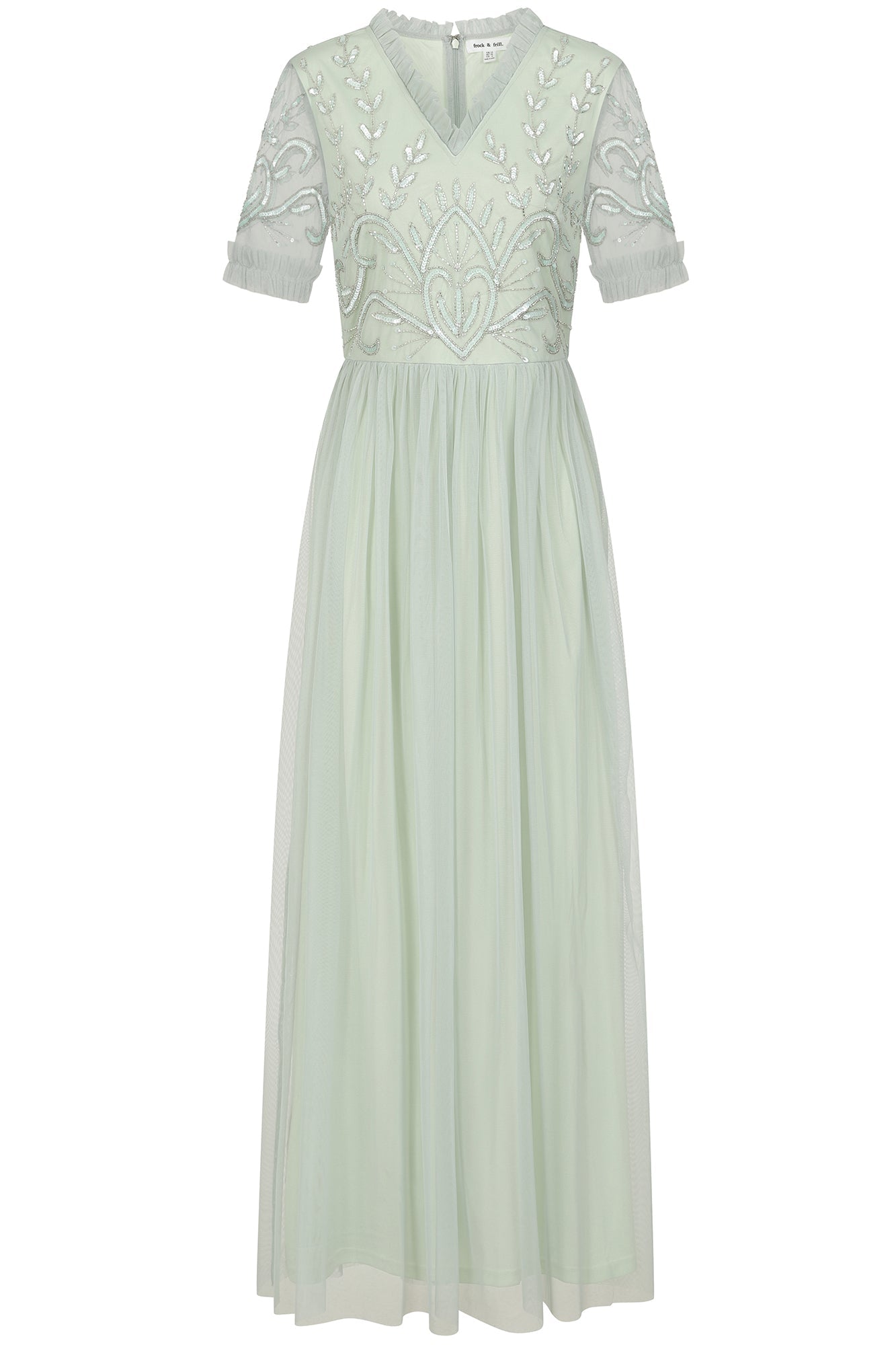 فستان فانا طويل مزين بالصدر باللون الأخضر