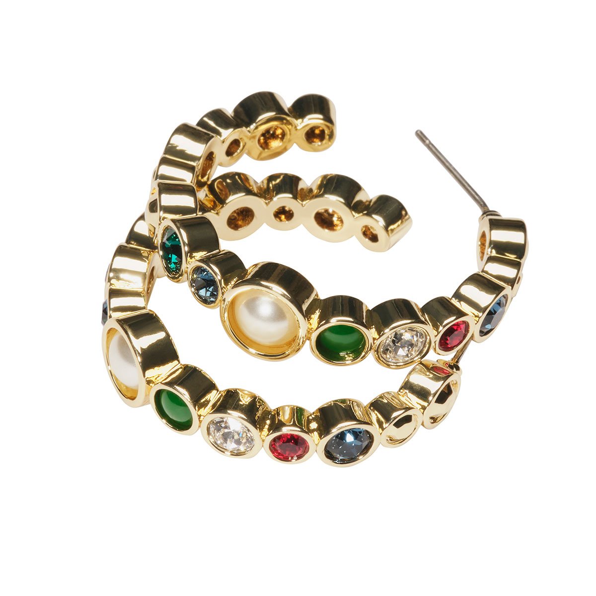 تتألق أقراط كورديليا الدائرية من لوفيت آند كو بكريستالات سواروفسكي بألوان الجواهر المذهلة، وهي اللمسة النهائية المثالية المستوحاة من الطراز العتيق لملابسك!