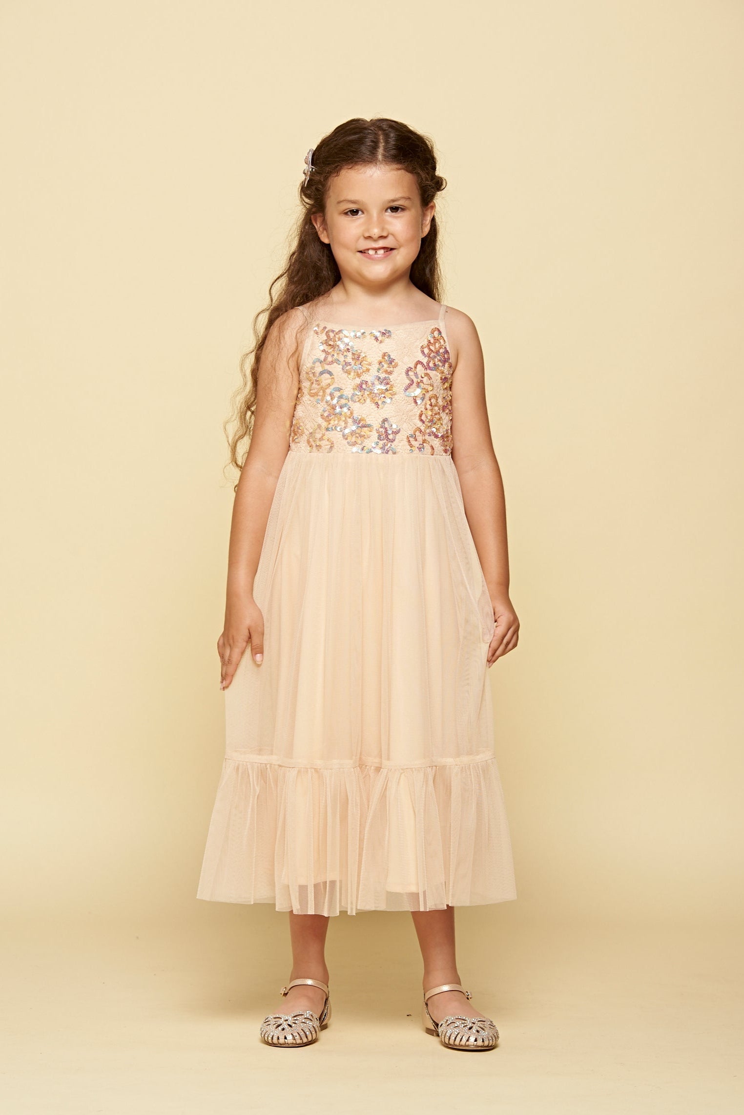 فستان نولا مزين بالترتر مع تنورة ذات طبقات