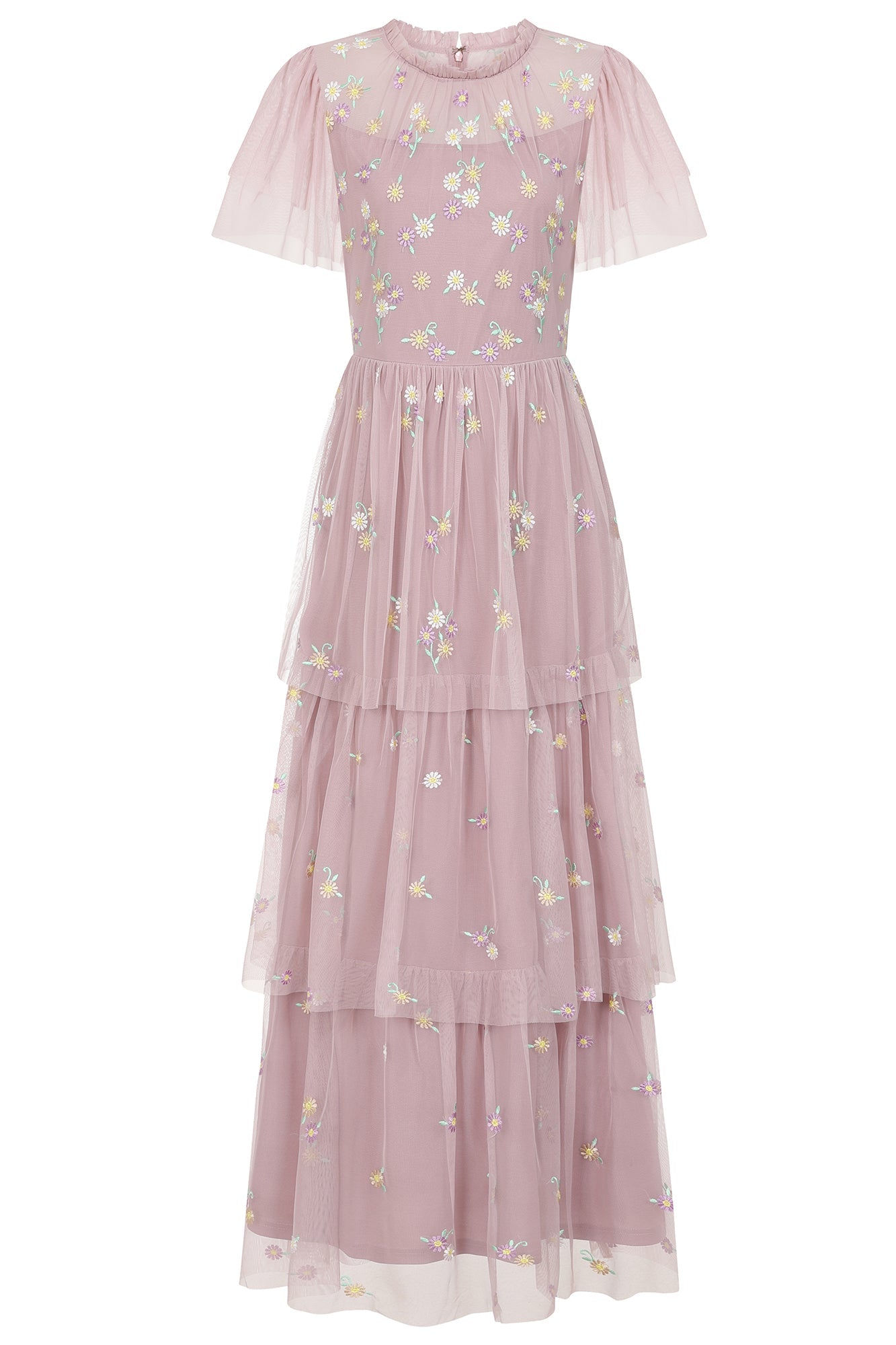 Twirl your way through spring with the Jemima maxi dress in blush. Boasting a full length skirt, tiered with layers of semi-sheer mesh, Jemima is populated with pretty daisy embroidery. This maxi dress is complete with a gathered neckline and layered flutter sleeves.  *